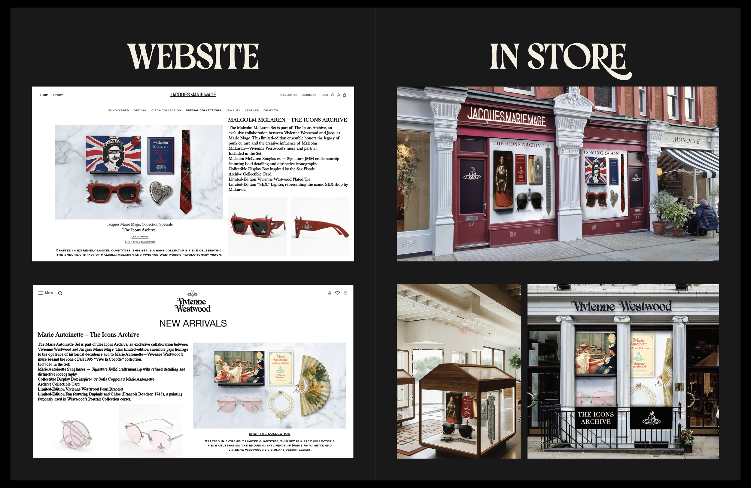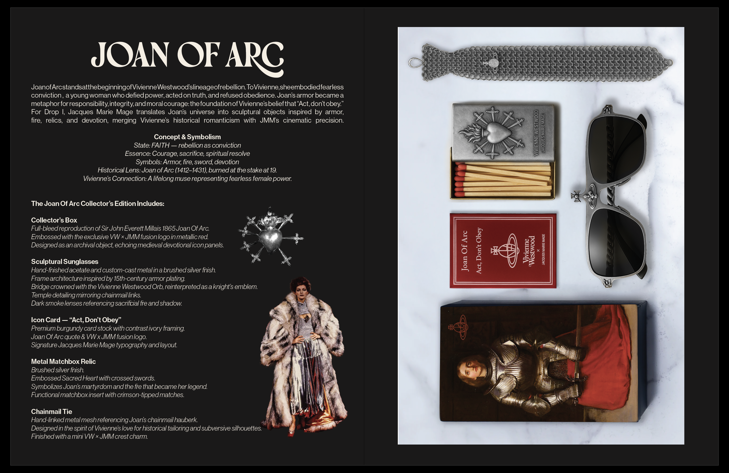 The Icons Archive is a conceptual collaboration marketing pitch presented in magazine form, inspired by the worlds of Vivienne Westwood and Jacques Marie Mage. The project imagines a four-part collector’s series, with each release centered on a historical figure who influenced Vivienne Westwood, reinterpreted through sculptural sunglasses and a curated set of symbolic objects. Structured around four themes — Faith, Pleasure, Chaos, and Performance — the project uses design, materials, and storytelling to explore rebellion as a lasting creative force. Together, the four drops form a unified archive that blends heritage, individuality, and craftsmanship into a single visual narrative.